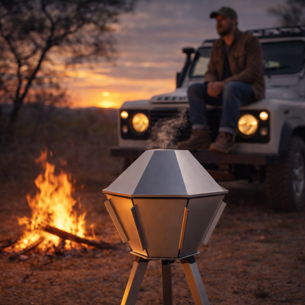 A compact flat pack braai built for easy travel, quick setup, and fires that bring people together.